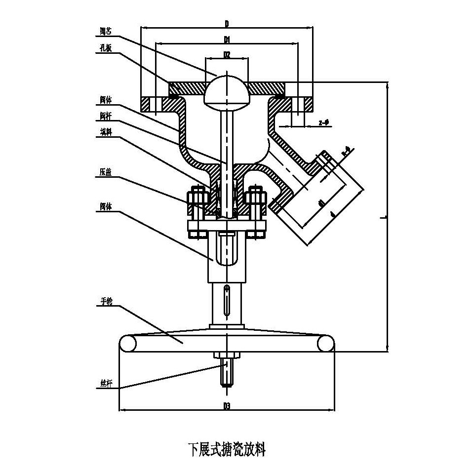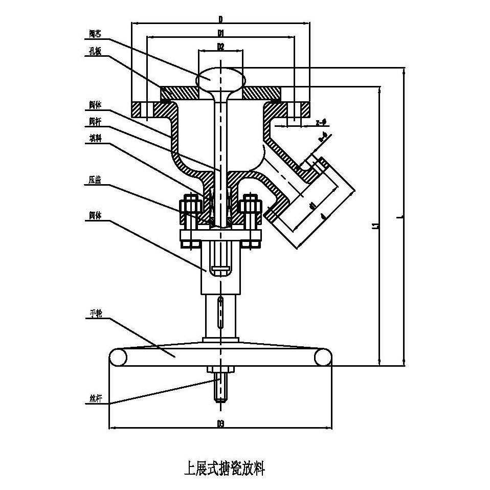 上展式搪玻璃放料閥尺寸表: